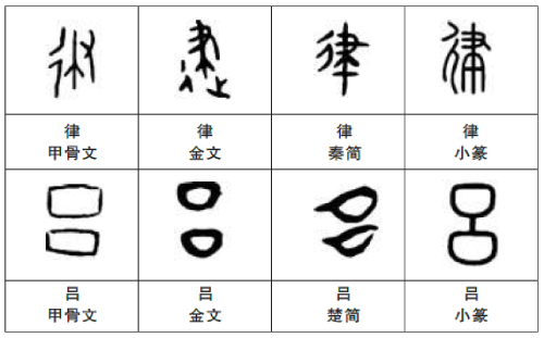 “乐”属于高层庙堂文化,具有教化功能,古有《乐经》,属于“六经”之一。上述五声加上两个半音,变徵(4)、变羽(7),共七个音。这七音是一个八度的自然音阶,没有音高,也就是没有定调。那音乐上的声调是怎么定的呢?用律。音乐中把一个八度均分为十二部分,叫“十二律”,用来确定基准音高。“律”从“彳”,“聿”声,《说文·部》:“律,均布也。”取其平均之义。所以“律”引申有准则义,如法律、戒律、规律、律诗等。制律的方法如下:以三分损益法生成十二根长度不同的竹管,这十二根竹管上部齐平,下部依次变短,插入土中,以候地气之变。竹管中灌以苇膜烧成的灰,外面筑室密闭。冬至阳气生,最长的竹管中的灰先被地气吹出,发出一个声,即“黄钟”之声,这个时间是子时,节气是冬至。其余以此类推,根据时节不同,分别发出黄钟(阴历十一月)、大吕(十二月)、太簇(一月)、夹钟(二月)、姑洗(三月)、仲吕(四月)、蕤宾(五月)、林钟(六月)、夷则(七月)、南吕(八月)、无射(九月)、应钟(十月)十二律。十二律又分阴、阳:奇数六律为阳律,叫“律”;偶数六律为阴律,叫“吕”(大吕的简称。根据《说文》,“吕”的本义是脊骨,大吕的“吕”或是“拒”的假借),所以十二律又简称“律吕”。律吕与二十四节气关系密切,可调节阴阳,故称“律吕调阳”。后世将阳律第一律与阴律第一律放在一起,叫“黄钟大吕”,来形容音乐或言辞庄严正大。律吕与地气密切相关,地气和人事密切相关,如果人的行为改变了气候,十二律就会紊乱,律吕紊乱,乐自然就会不正,而这样的乐反过来又会影响人的行为。所以吴公子季札观周乐,就能看出一个国家的政治状况。