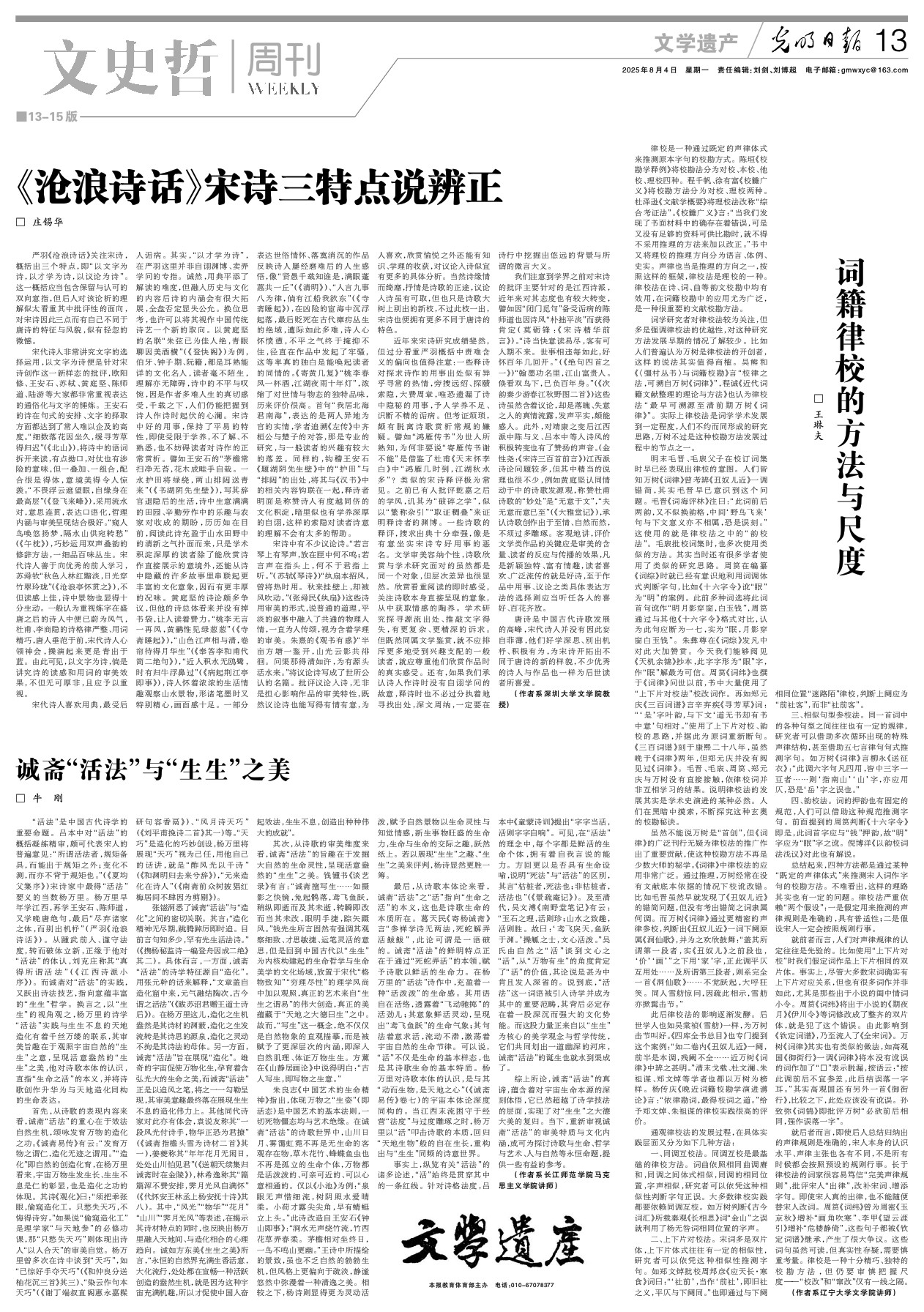 严羽《沧浪诗话》关注宋诗,概括出三个特点,即“以文字为诗,以才学为诗,以议论为诗”。这一概括应当包含保留与认可的双向意指,但后人对该论析的理解似太看重其中批评性的面向,对宋诗因此三点而有自己不同于唐诗的特征与风貌,似有轻忽的微憾。