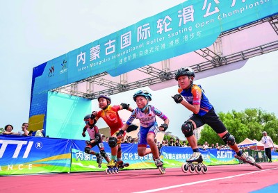 8月2日,2025内蒙古国际轮滑公开赛在呼和浩特市万和体育公园轮滑场开幕。本次赛事吸引了来自中国、韩国、越南、缅甸、泰国5个国家的57支代表队,共计600余名选手参赛。比赛设置速度轮滑、自由式轮滑、滑板、滑步车四大项目,下设74个小项。参赛选手按年龄分为成年组、青年组、少年组及儿童组四个组别。图为参赛选手在速度轮滑比赛中。丁根厚摄/光明图片