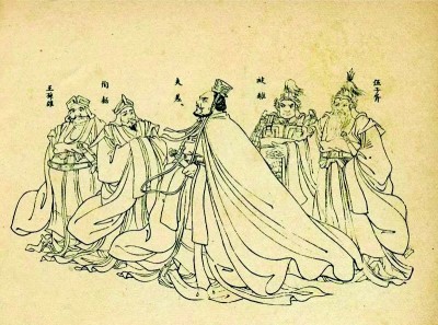 程十发连环画《胆剑篇》中的夫差等  图片由作者提供