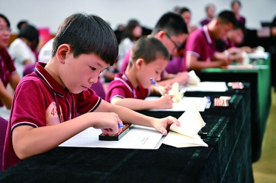 8月8日是世界珠算日,“非遗育未来 强国梦飞扬”2025神墨珠心算全国精英学员才艺展在北京师范大学举办。经过全国赛层层选拔后,来自全国各地的44名小选手参加花样赛、个人赛、团队赛及晋级赛四大环节比赛,展示珠心算对“静心力、内算力、行动力”的培养成果。图为参赛选手进行个人赛项目比赛。新华社记者 马宁摄