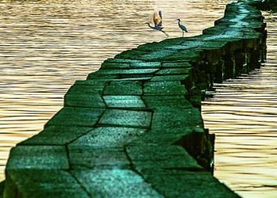 然而,浙东运河绝非仅存于史册的静默标本,我希望能用自己的镜头捕捉它跳动的时代脉搏。晨曦初露,运河古纤道旁,两只白鹭展翅欲飞;宁波三江口的货轮沉稳地拉响汽笛,从古老水道与现代港口的交汇处驶向远方;而在“浙东唐诗之路起航地”的绍兴叶家堰村村口,少年们踏着平衡车轻盈穿梭,老人家安详地享受着暖阳……这份古今交融的奇妙和谐,正是浙东运河最动人的生命表情。