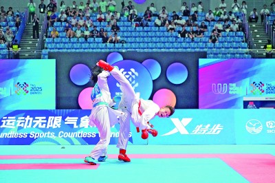 8月9日下午,成都世运会空手道女子组手61公斤级决赛在简阳文体中心体育馆进行。中国队选手龚莉以5比1战胜日本队选手夺得金牌,为中国体育代表团赢得了本届世运会的第二枚金牌。
