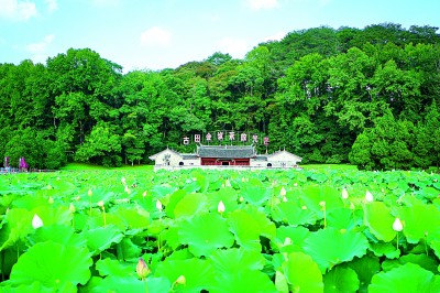 福建龙岩上杭县,古田会议会址前荷花盛开。章宸睿摄/光明图片
