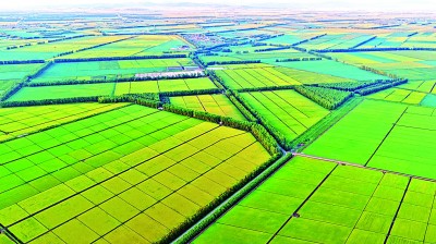 8月11日,黑龙江省双鸭山市友谊县北大荒集团友谊农场第五作业区,稻田一望无际,如同一幅风景画。杨志礼摄/光明图片
