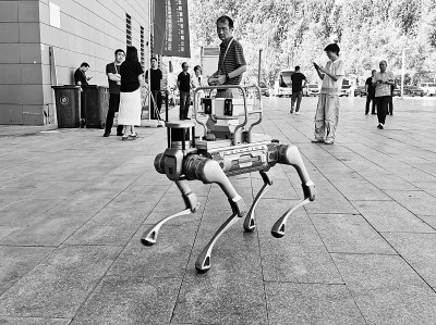8月13日,第七届中国(克拉玛依)国际石油天然气及石化技术装备展览会在新疆克拉玛依开幕。本届展会以“新驱动、新制造、新效能”为主题,设置油气及化工、新能源及新材料、智能算力及科技创新、服务贸易、国际合作展示等特色展区,吸引多个国家的知名企业和采购商参展。图为在展览会上拍摄的可用于油气生产场景的机器狗。新华社记者 顾煜摄