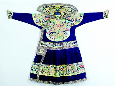康熙时服装色彩的等级区别更加明显,尤其以黄色和蓝色为重点。雍正朝更将皇帝礼服色彩定制为石青、明黄、大红、月白四色,青色开始从朝服系统进入礼服系统,并在皇帝的四大礼服色彩中包含石青、月白两种一深一浅的青色系。