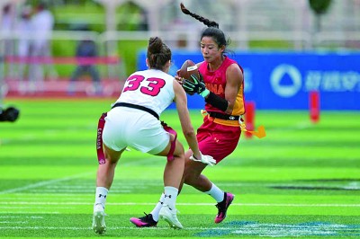 14日是腰旗橄榄球项目的首个比赛日。当天,中国女队首次站上世运会腰旗橄榄球赛场,与全球顶尖球队同台竞技。