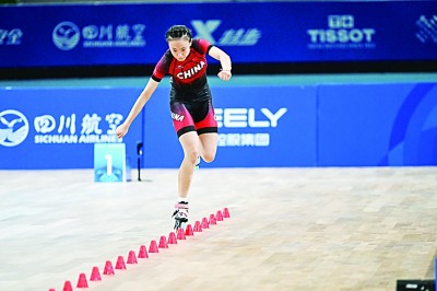自由式轮滑是一项集技巧、创意与艺术表现于一体的潮流运动,成都世运会设有男子花式绕桩、男子速度过桩、女子花式绕桩、女子速度过桩4个小项。