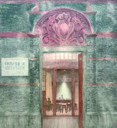 值得一提的是,城市山水也开拓出红色题材美术创作的新境界。如毛冬华的作品《诞生地》(图④),以细腻的笔法描绘了上海中共一大会址。此类历史题材创作通常以人物画为主,而艺术家通过对建筑特写式的深入刻画,以及对光线、色彩的巧妙处理,传达出红色地标庄严肃穆的精神性和历史的深邃感,同时又极具艺术美感,使观者从别样角度感悟革命精神,铭记奋斗历程。