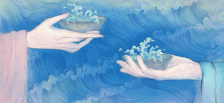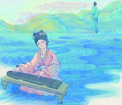 此词写相离之远与相思之切,用江水写出双方的空间阻隔和情思联系,表达女主人公对爱情的执着追求与热切的期望。全词以长江水为抒情线索,因此插图创作也以长江水为意象贯穿画面,并使用板绘模拟彩铅绘制的质感。全图中江水既为阻隔又为情感连接,以江水的永不停歇映衬出相思之情亘古不变,表达着跨越时间与空间的永恒相思。杜信仪/插画