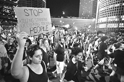 以色列8月17日爆发大规模游行示威活动,数十万民众走上街头,敦促以政府尽快与巴勒斯坦伊斯兰抵抗运动(哈马斯)达成加沙地带停火协议,让所有被扣押人员获释。图为17日晚,人们在以色列中部城市特拉维夫的以色列国防部大楼附近参加游行示威活动。新华社发