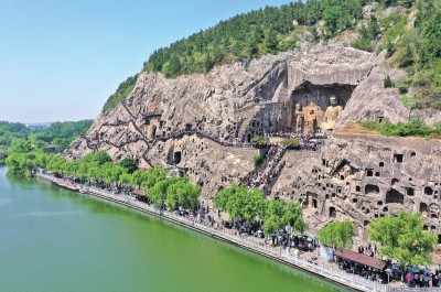 要论当前龙门石窟保护实力的集中体现,2021年的奉先寺大型保护工程堪称典范。由于地质营力的不断作用及人为因素的影响,奉先寺渗漏水、岩体开裂等情况长期存在,对石窟的长久保存产生威胁。同时,奉先寺每天要面对万千游客的目光。如何让保护工程既能保护千年瑰宝,又不影响游客观赏,是我们的首要任务。于是,50多米高的“悬挑架杆”成为奉先寺前的屏障,既为保护人员“空中绣花”提供支撑,也如一道透明帘幕,让游客依然能望见大佛容貌。