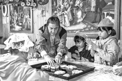 位于内蒙古呼伦贝尔市额尔古纳市的恩和俄罗斯族民族乡,是中国唯一一个俄罗斯族民族乡。近年来,当地群众通过开展俄罗斯族家庭游、列巴制作体验、套娃绘画体验等特色活动,吸引大量游客前来观光。图为8月21日,在恩和俄罗斯族民族乡,小朋友在体验制作列巴。新华社记者 马金瑞摄