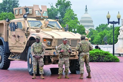 图为8月19日在美国首都华盛顿的联合车站外拍摄的国民警卫队人员和车辆。新华社发