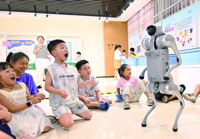 日前,在江西省宜春市高安市图书馆举行中国流动科技馆高安巡展。流动科技馆是为尚未建设实体科技馆、科学教育资源相对不充足的地区公众提供的免费科学教育服务,用流动的科普设施把科技馆送到公众“家门口”。此次巡展以“体验科技魅力,点亮科学梦想”为主题,展出60余件互动展品,从8月1日至10月31日,免费对外开放,激发公众的科学探索热情。图为孩子们在与“机器狗”互动。
