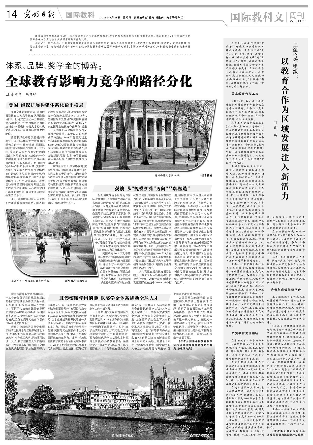 今年是上海合作组织“中国年”,也是上海合作组织可持续发展年。上合组织以“互利、互信、平等、协商、尊重多样文明、谋求共同发展”的“上海精神”为指引,在维护地区稳定、促进成员国全面合作方面取得显著成果,在国际舞台上的影响力持续扩大。教育合作是上合组织人文交流的重要组成部分,“中国年”期间,上合组织教育合作进一步深化,再上新台阶。