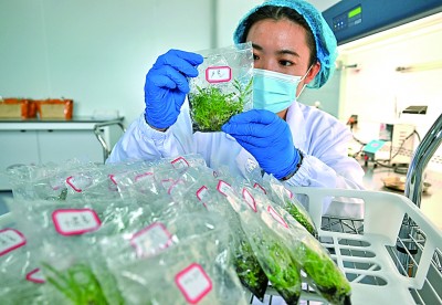 海口海关实验室日前获世界海关组织(WCO)地区海关实验室认定,成为全国三家WCO地区海关实验室之一。海口海关实验室总面积5.6万平方米,主要分布在海口、三亚,共有8栋实验室大楼。图为8月27日,三亚崖州湾科技城月亮岛综合实验室的工作人员在进行植物组织培养。新华社记者 郭程摄
