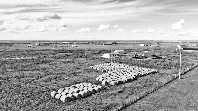 初秋时节,内蒙古呼伦贝尔大草原草色渐黄。在辽阔的草原上,牧民将丰收的牧草捆扎成卷,勾勒出一幅祥和美丽的秋日丰收图景。图为8月26日,在内蒙古呼伦贝尔市鄂温克族自治旗拍摄的捆好的草卷。新华社记者 马金瑞摄
