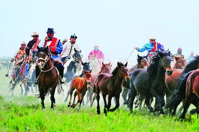8月28日,青海省海西蒙古族藏族自治州第九届那达慕大会在格尔木市郭勒木德镇阿拉尔草原开幕。本届那达慕将持续至8月30日,包含赛马、搏克、射箭等传统体育项目,同时还将举办民族服饰展演、非遗展示、民族歌舞表演等活动,吸引众多游客参加。图为开幕式上的马群方阵。新华社记者 齐芷玥摄