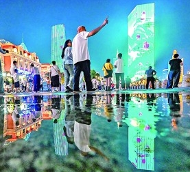 华灯初上,“海河之夜”灯光秀如约而至,中国与上合组织国家的城市地标以及中欧班列等元素一一显现,光影汇聚出“相约上合”“合作共赢”的字样。