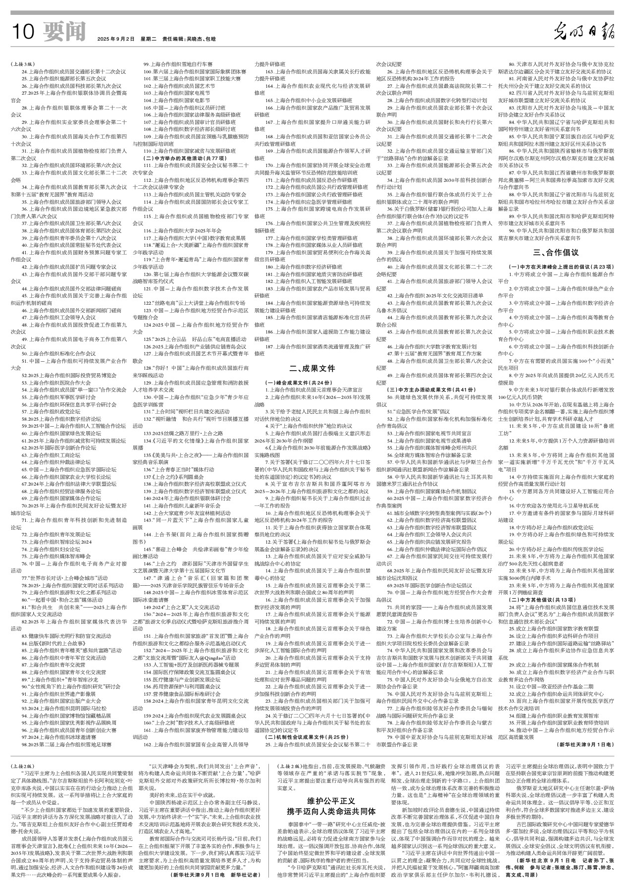 中国担任上海合作组织2024-2025年轮值主席国工作成果清单