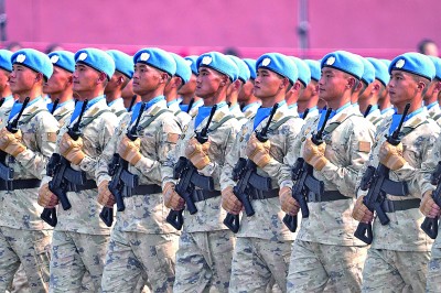 今天,我们聆听历史的回响,高歌“歌唱我们亲爱的祖国,从今走向繁荣富强”“强国复兴有我担当”。这是我们走和平发展道路的坚定决心,这是我们捍卫国家主权和领土完整的坚强意志,这是我们维护世界和平安宁的强大能力。