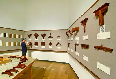 观众在馆藏家具展上揣摩明式家具结构。本报记者 田呢摄