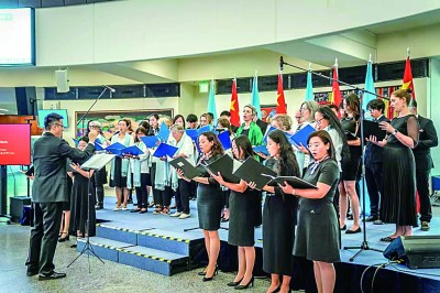 维也纳华人爱乐合唱团、旅欧中国青年小提琴家何子毓、维也纳联合国国际职员合唱团联袂奉献了一场精彩纷呈的音乐盛会。《游击队之歌》《保卫黄河》《重整河山待后生》等经典曲目,唱出了中华民族不屈不挠、奋勇抗敌的民族精神。《爱的欢笑》等世界名曲,传递了世界人民对自由、和平与幸福的期盼。演出最后,《茉莉花》和《天下一家》将音乐会推向高潮。