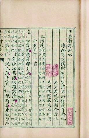 《玉台新咏》是南朝文学家徐陵编选的上自汉魏、下迄梁代的诗歌总集。据徐陵序文中“周王璧台之上,汉帝金屋之中”之句,《玉台新咏》意即供宫掖后庭歌咏的新诗集。