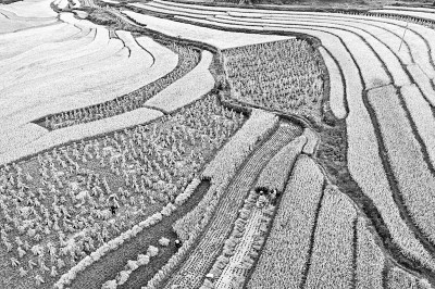 金秋时节,贵州省黔西市的7万亩水稻陆续成熟,农民开镰收割,到处是喜人的丰收景象。图为9月11日,在黔西市锦星镇洪湖村,村民收割成熟的稻谷。胡毅摄/光明图片