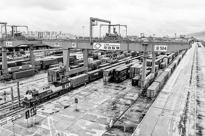 据重庆铁路物流中心统计,2025年1月至8月,重庆中亚班列去程开行35列,发送箱量超3000标箱,发送货值近6亿元。今年4月,重庆首次开行图定中亚班列,并以每月2列的固定频次实现常态化开行。相较于以往的公路转铁路的联运模式,中亚班列常态化开行后,重庆至中亚的物流时效提升20%以上,单箱成本降低15%。图为9月13日,满载汽车零配件、笔记本电脑等货物的中亚班列在重庆团结村中心站等待发车。新华社记者 唐奕摄