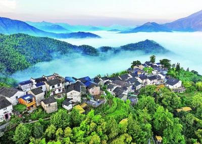 9月16日,秋雨初霁的安徽黄山休宁县溪口镇木梨硔村出现壮美的云海景观。连绵的群山与飘荡的云雾环抱着依山而建的村落,勾勒出一幅秋日的水墨画卷。施亚磊摄/光明图片