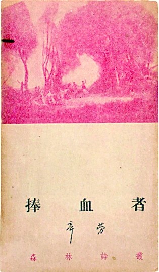 《捧血者》是辛劳创作的长篇叙事诗,是诗人用血写成的诗,完稿于新四军的驻地,是《森林诗丛》之一,收录序诗,以及行人、月黑的夜、我爱、奥秘、林雀、古歌六个章节。《序诗》中写道:“献给家修和在炮火中走散的友人们。”书中附有作家东平《给〈捧血者〉的一封信》。