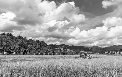 金秋时节,地处麻山腹地的贵州省黔南布依族苗族自治州罗甸县11万余亩优质水稻进入大面积收割期。图为9月18日,在罗甸县边阳镇兴隆村,农机手驾驶收割机在田间收割水稻。史传鸿摄 光明图片