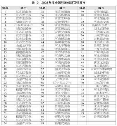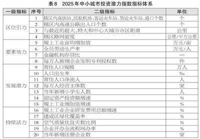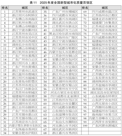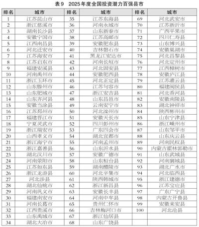 2025年度全国投资潜力百强区、全国科技创新百强区、全国新型城市化质量百强县市等名单及各指数指标体系详情见《中国中小城市发展报告(2025)》绿皮书和中小城市指数网。