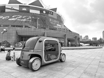 图为穿梭在南宁国际会展中心内的无人驾驶智慧小巴。闫丛笑摄/光明图片
