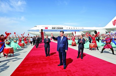 新疆维吾尔自治区党委书记陈小江、自治区人民政府主席艾尔肯·吐尼亚孜、自治区人大常委会主任祖木热提·吾布力、自治区政协主席努尔兰·阿不都满金、新疆生产建设兵团政委何忠友等在舷梯下迎候。习近平走下舷梯时,少先队员献上鲜花。各族群众代表身着民族服饰,载歌载舞,欢迎总书记的到来,表达对总书记的衷心祝福。
