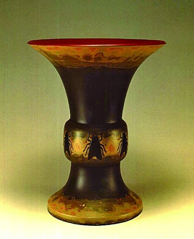 绿彩嵌金六蝉堆漆脱胎花瓶 沈福文