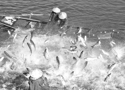 双节临近,安徽省安庆市岳西县迎来捕鱼季,工人们加紧捕捞、装运鲜鱼,确保新鲜肥美的生态鱼及时供应。图为9月28日,工人们在岳西县天堂湖进行捕鱼作业。吴均奇摄/光明图片