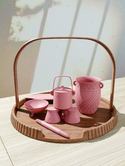 为了让古老的造物智慧融入现代家居生活,设计师潘伟豪以磁山文化陶器为灵感,结合当代人的烹饪习惯,推出了“磁山文化食器”系列作品。该套设计作品由陶钵、陶罐、磨盘与磨棒、陶盂及支座等饮食器具组成,不仅在造型和色彩上保留了磁山文化陶器的古朴韵味,还在诸多外观细节及使用功能上进行了巧妙改良。