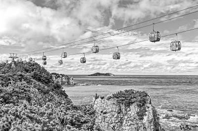 国庆中秋假期进入尾声,各地游客游兴不减,乐享假期。图为10月7日,在山东省荣成市成山头风景区,游客乘坐缆车观景。新华社发