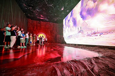 近日,位于海南文昌的文昌航天科普中心升级改造工程进入收尾阶段,并短期向公众免费开放,以检验场馆运营能力与服务水平,为后续正式开放奠定基础。该中心依托中国文昌航天发射场的区位优势,以“星辰大海·文昌启航”为主题,系统展现中国航天从追梦到圆梦的辉煌历程。经过本次改造,该中心的展陈内容升级为覆盖航天历史、火箭发射、空间科学、未来探索等多维主题的沉浸式体验体系。图为10月7日,游客在文昌航天科普中心参观。新华社记者 蒲晓旭摄