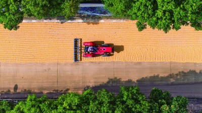 当前正值“三秋”生产关键期,各地加强农机和烘干设备调度力度,积极开展湿粮抢烘和晾晒作业,助力秋粮收获。图为10月14日,河南省驻马店市西平县二郎镇小王庄村,一辆农用车在翻晒玉米。 新华社发