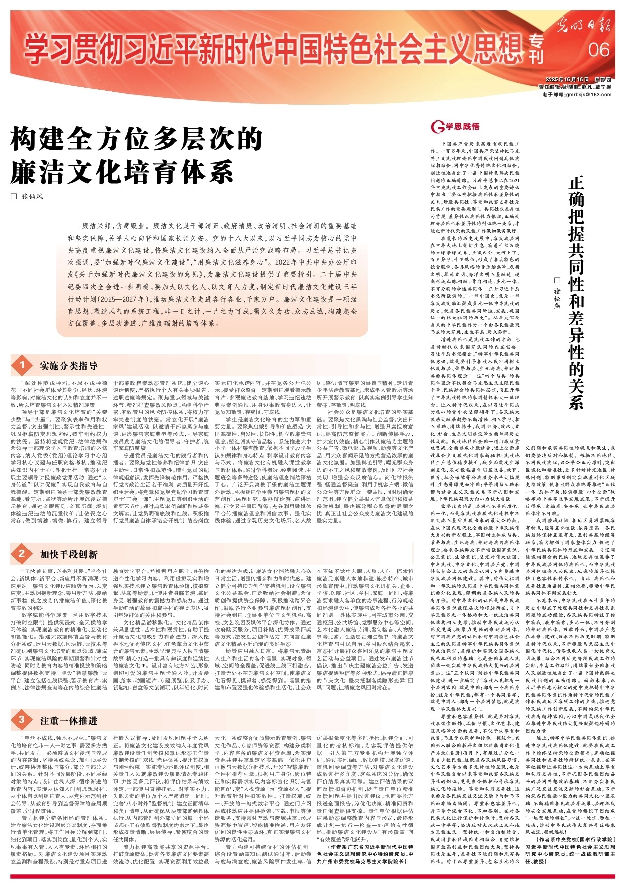 “单丝不成线,独木不成林。”廉洁文化的培育绝非一人一时之事,需要多方携手、共同发力。必须遵循文化浸润与养成的内在逻辑,坚持系统观念,加强顶层设计,统筹协调整体与部分、部分与部分之间的关系。针对不同发展阶段、不同层级对象的特点,设计由浅入深、循序渐进的教育内容,实现从认知入门到思想深化、从个体自觉到组织育人、从党内示范到社会传导、从教育引导到监督保障的全周期覆盖、全过程贯通。