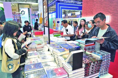 10月17日,2025天府书展在成都世纪城新国际会展中心开幕。本届书展将持续至20日,展览面积3万余平方米,现场集中展出图书3万余种,设立银发阅读专区、Z世代阅读专区等,满足不同年龄段读者的需求。图为读者在书展现场选购图书。新华社记者 唐文豪摄