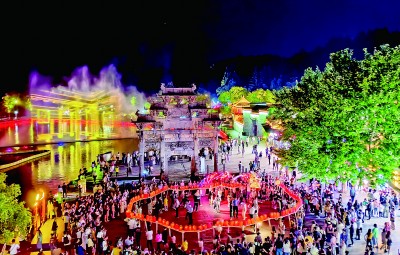 这两年,为了给周边村民提供休闲娱乐的好去处,也充实本地村民的“钱袋子”,我们一门心思想盘活村里的新业态,点燃“夜经济”。在彩灯不夜城,孩子们围着奇幻魔法世界区的荧光灯玩耍,国风古韵区的汉服姑娘争相与“哪吒”合影。熊猫、黑神话悟空、精灵女神这些IP形象一立起来,大人小孩纷纷涌进来,拿着手机拍个不停,周末的人流量轻轻松松就超过了5000人次。