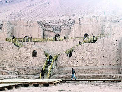 图为10月20日,游客在新疆吐鲁番胜金口石窟游览。本报记者 黄小异摄/光明图片