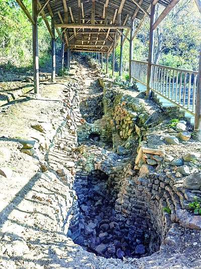 在高岭瓷土矿遗址,考古揭露了三个历史阶段的遗存:第一阶段为清代中期露天矿脉遗址,可见花岗岩开采面;第二阶段为清代中晚期淘洗废渣形成的深达9.8米的尾砂层,印证盛采期的庞大规模;第三阶段为成组分布的晚清民国淘洗池、排沙沟、排水沟、挡土墙、晾晒场、灶台、工棚等遗存,可还原流水线式加工作坊和工人生产生活景象。