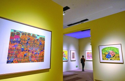 10月28日,“大地绘彩——2025年农民画大展”在北京中国国家博物馆开幕。图为观众在参观展览。新华社记者 金良快摄